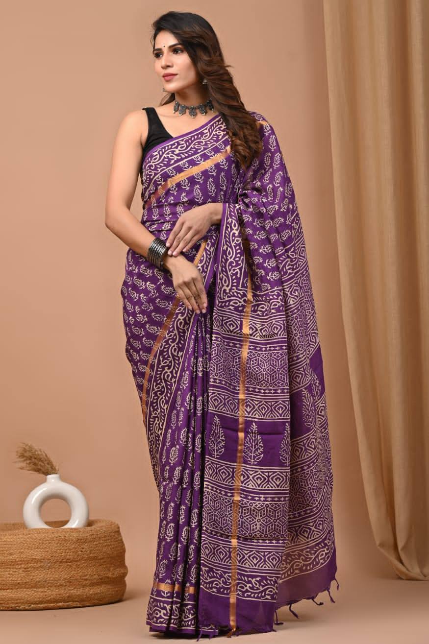 Soft Everyday Saree In Wine Mulmul Cotton With Print And Blouse Piece