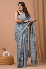 Trendy Mulmul Cotton Saree In Silver With Lightweight Printed Appeal