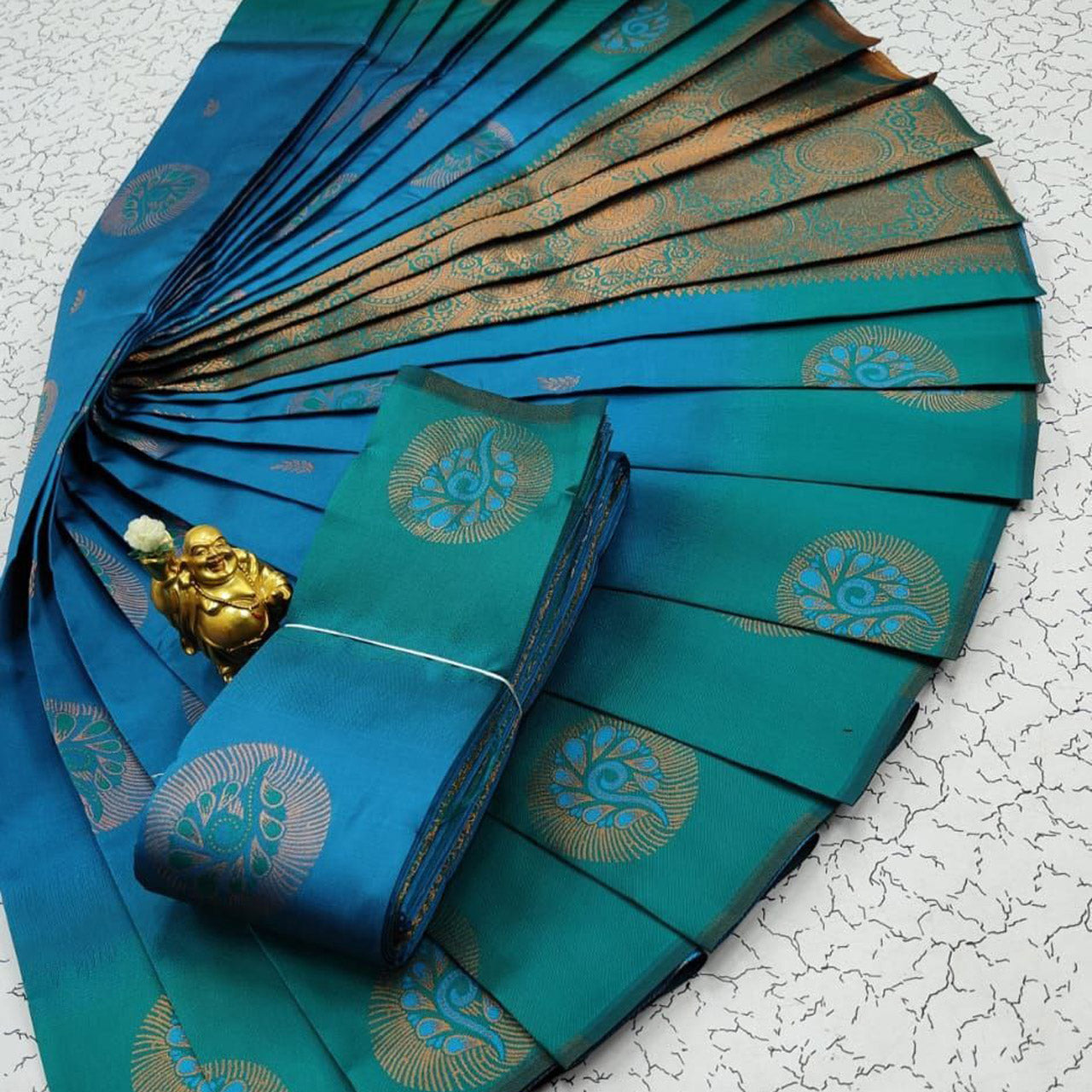 3D Silk Weave Saree Blue Kubera Pattu For Weddings And Festive Events