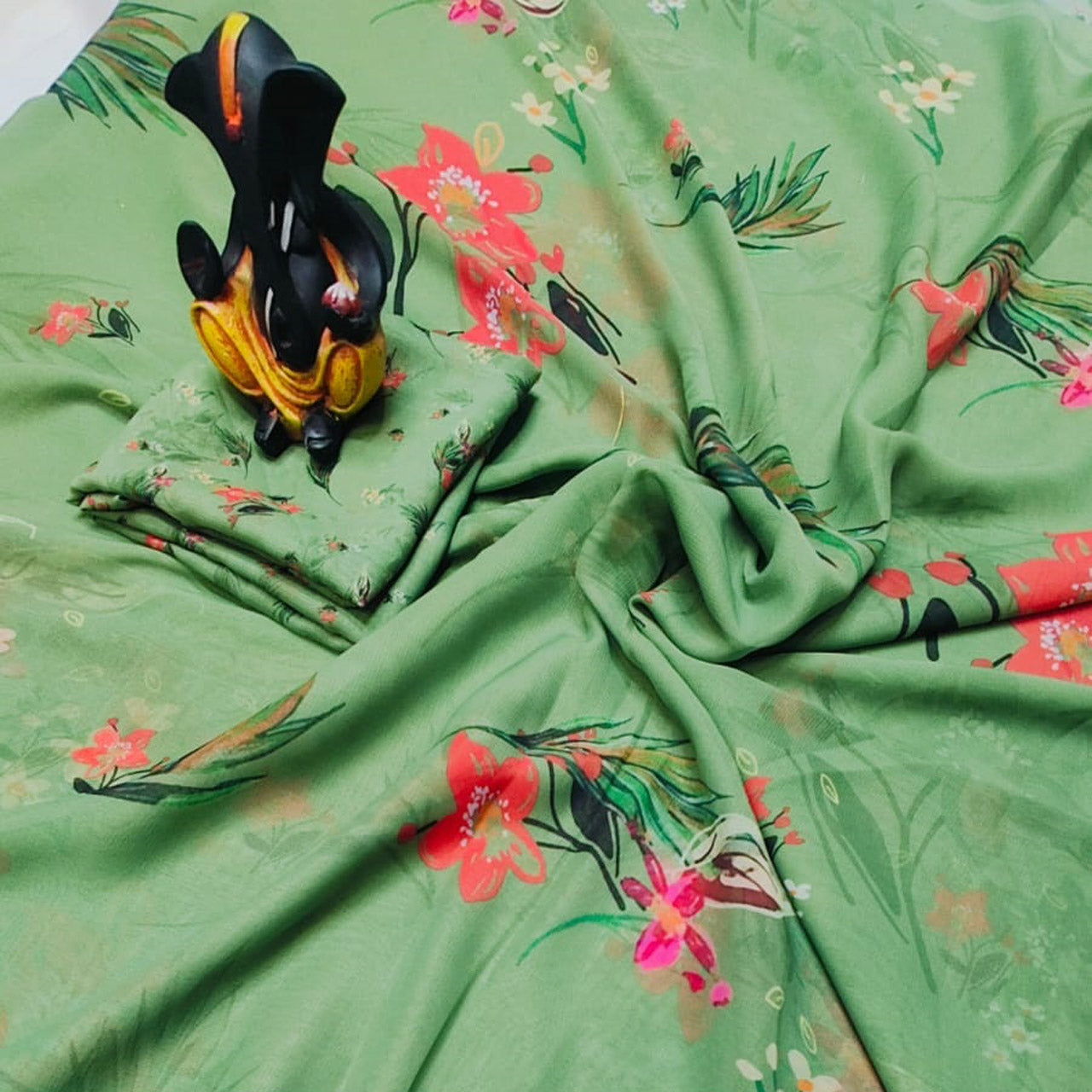 Alluring Sea Green Soft Georgette Saree Floral Digital Print For Chic Draping