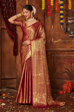Soft Silk Brown And Pink Mysore Saree With Zari Border And Latest Blouse Fabric
