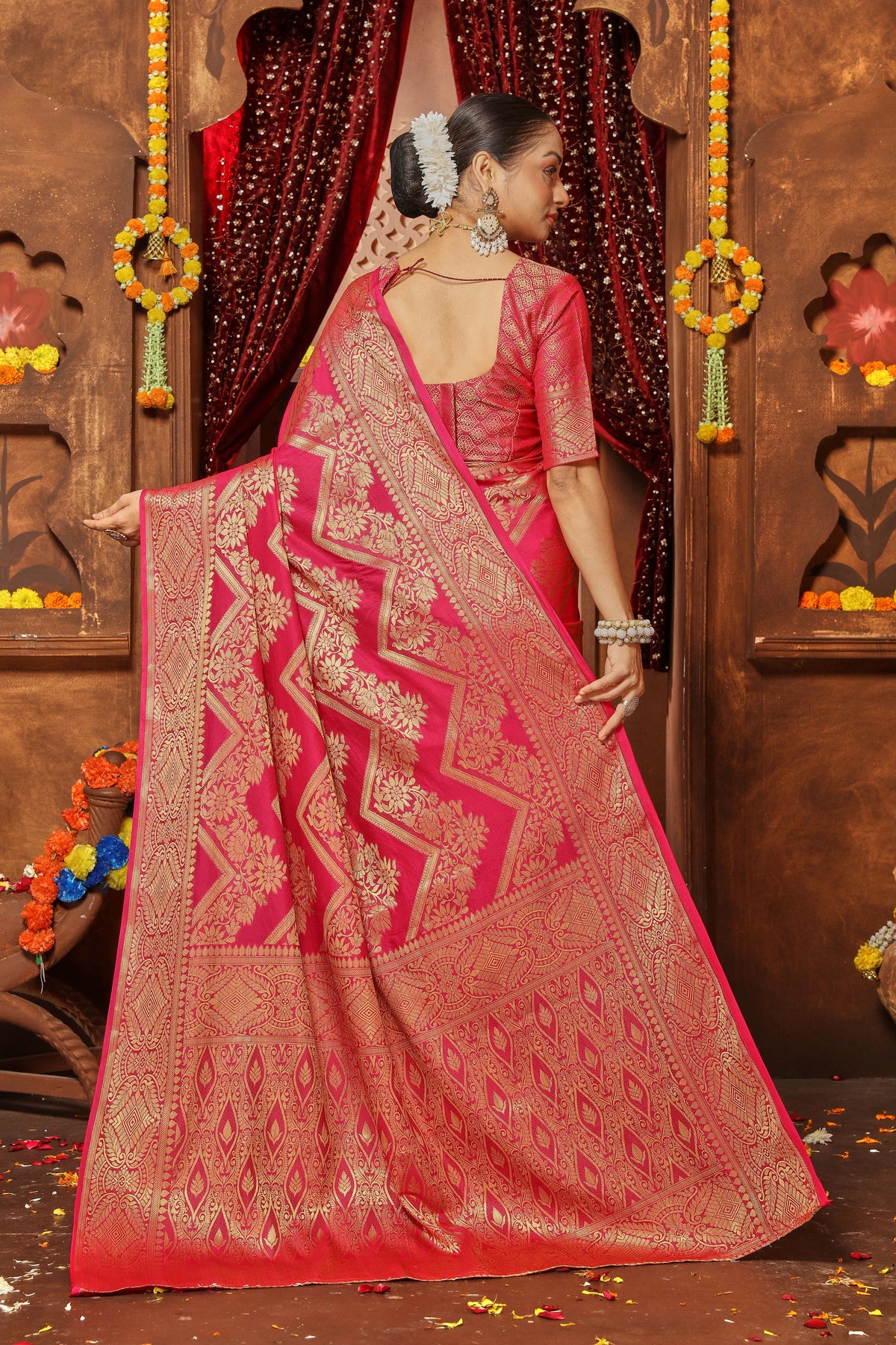 Opulent Silk Saree With Traditional Zari Brocade Weaving