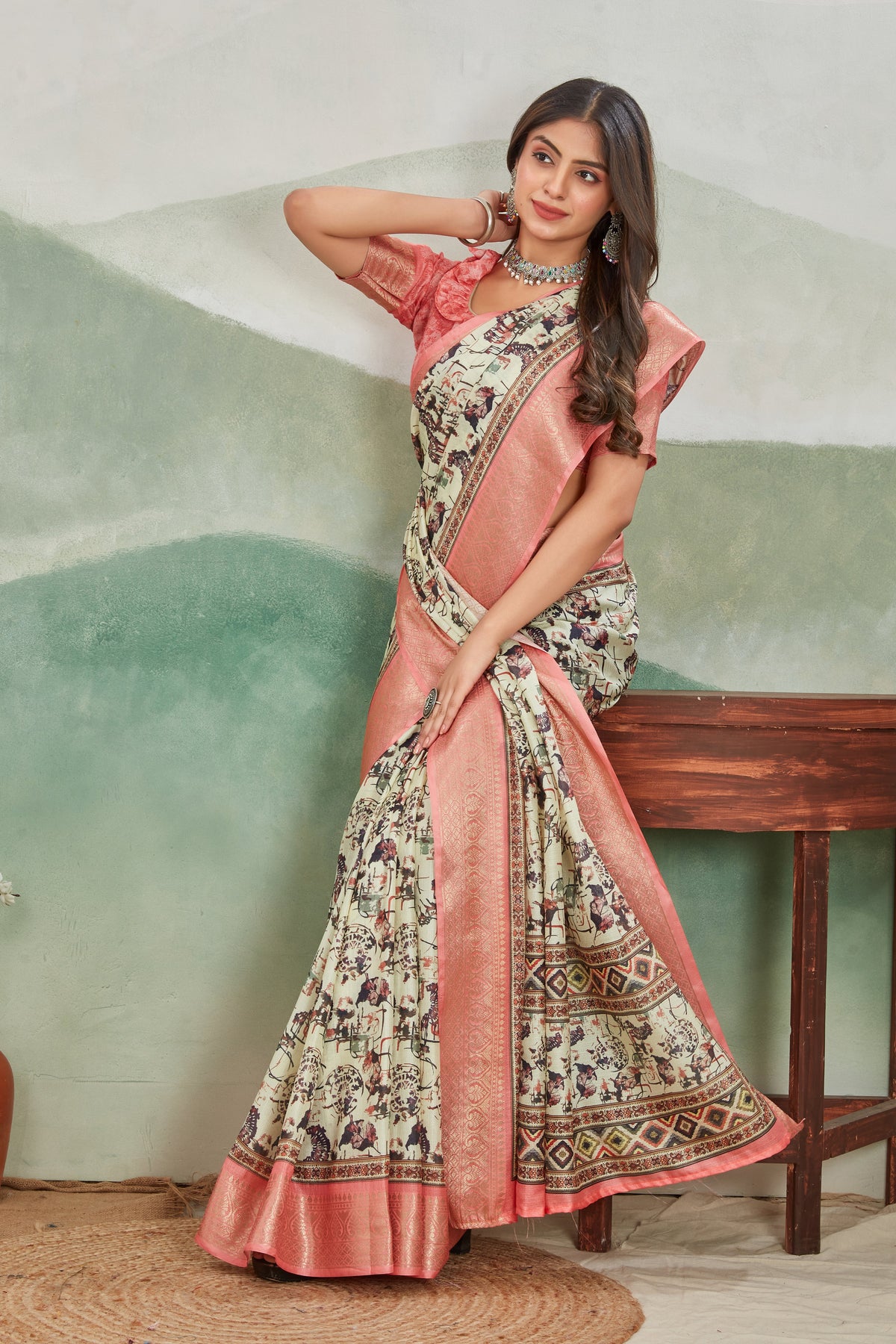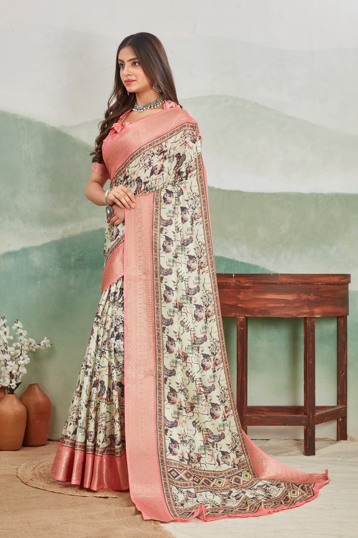 Enhance your traditional wardrobe with this beautiful Viscose Khadi Batik Digital Printed Saree. Perfect for functions and special gatherings, its elegant digital print highlights a blend of heritage and contemporary design. With a saree length of 5.5 meters and an accompanying blouse piece of 0.80 meters, it provides the ideal fabric combination to drape effortlessly. This saree pairs comfort with style, crafted for lasting impressions. Remember, dry cleaning is recommended to maintain its color and fabric quality over time. A slight variation in color may occur due to display settings, adding a unique touch to your outfit.