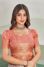 Soft Silk Brown And Pink Mysore Saree With Zari Border And Latest Blouse Fabric