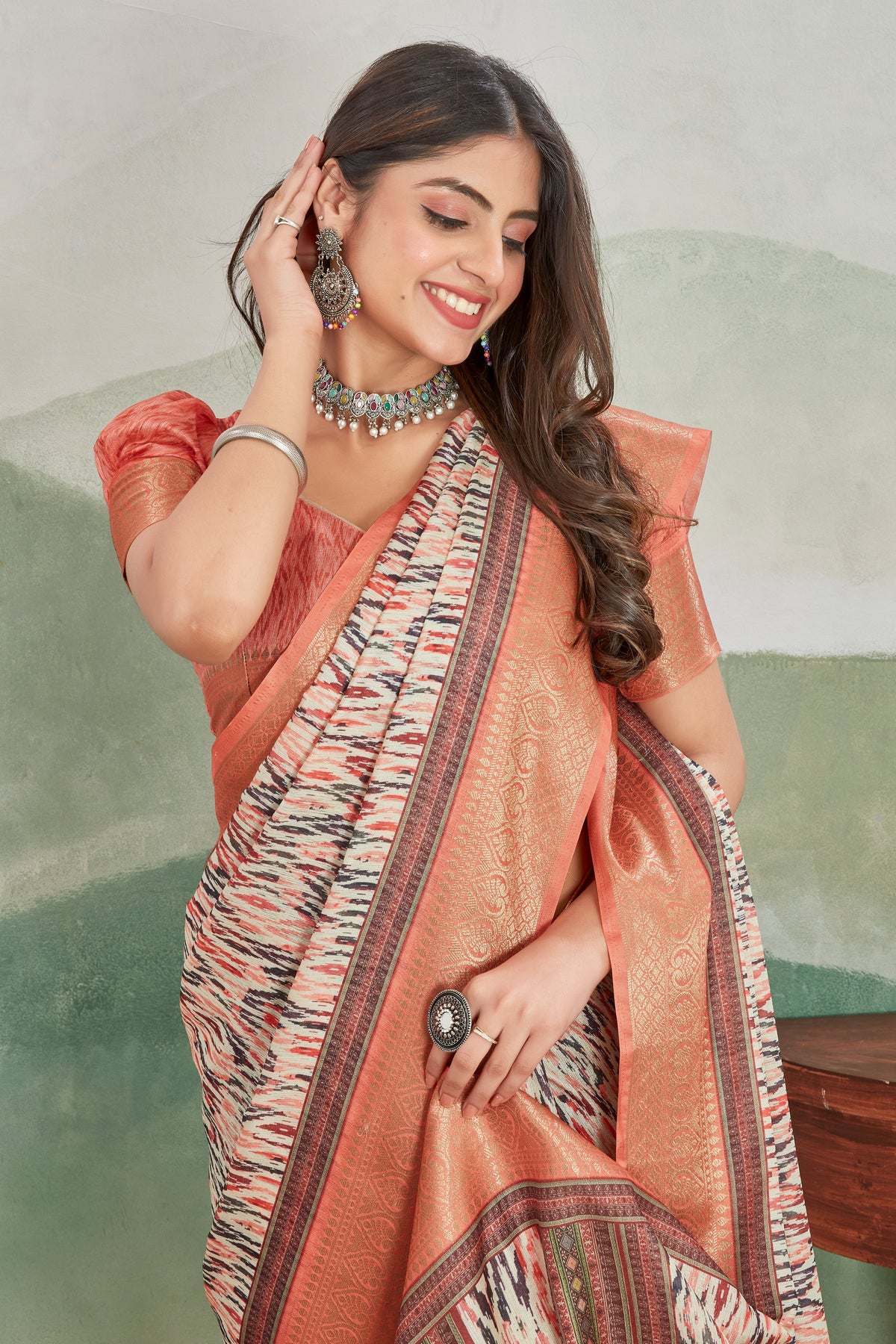 Cultural Wear Viscose Khadi Saree With Batik Digital Design
