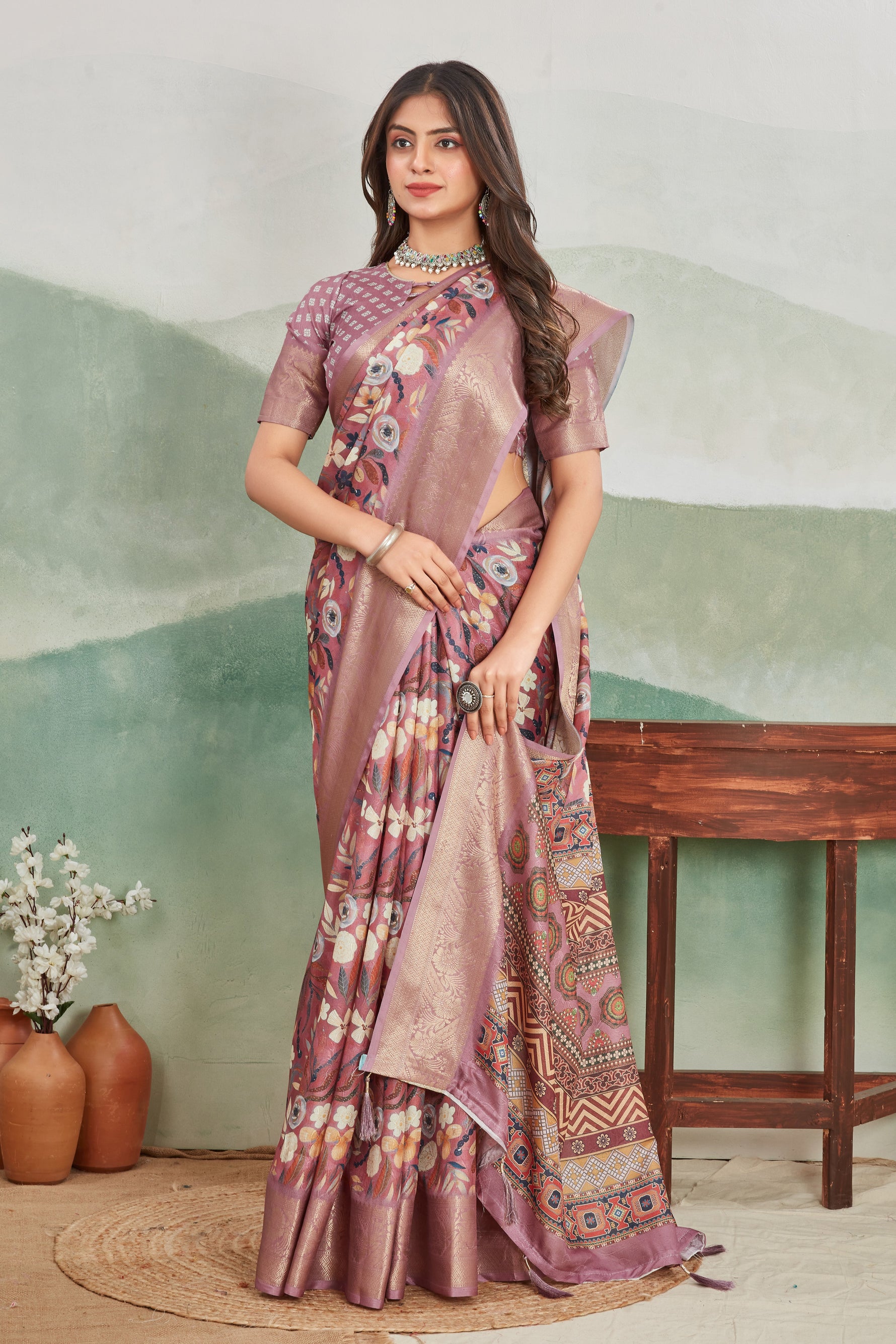 Enhance your traditional wardrobe with this beautiful Viscose Khadi Batik Digital Printed Saree. Perfect for functions and special gatherings, its elegant digital print highlights a blend of heritage and contemporary design. With a saree length of 5.5 meters and an accompanying blouse piece of 0.80 meters, it provides the ideal fabric combination to drape effortlessly. This saree pairs comfort with style, crafted for lasting impressions. Remember, dry cleaning is recommended to maintain its color and fabric quality over time. A slight variation in color may occur due to display settings, adding a unique touch to your outfit.