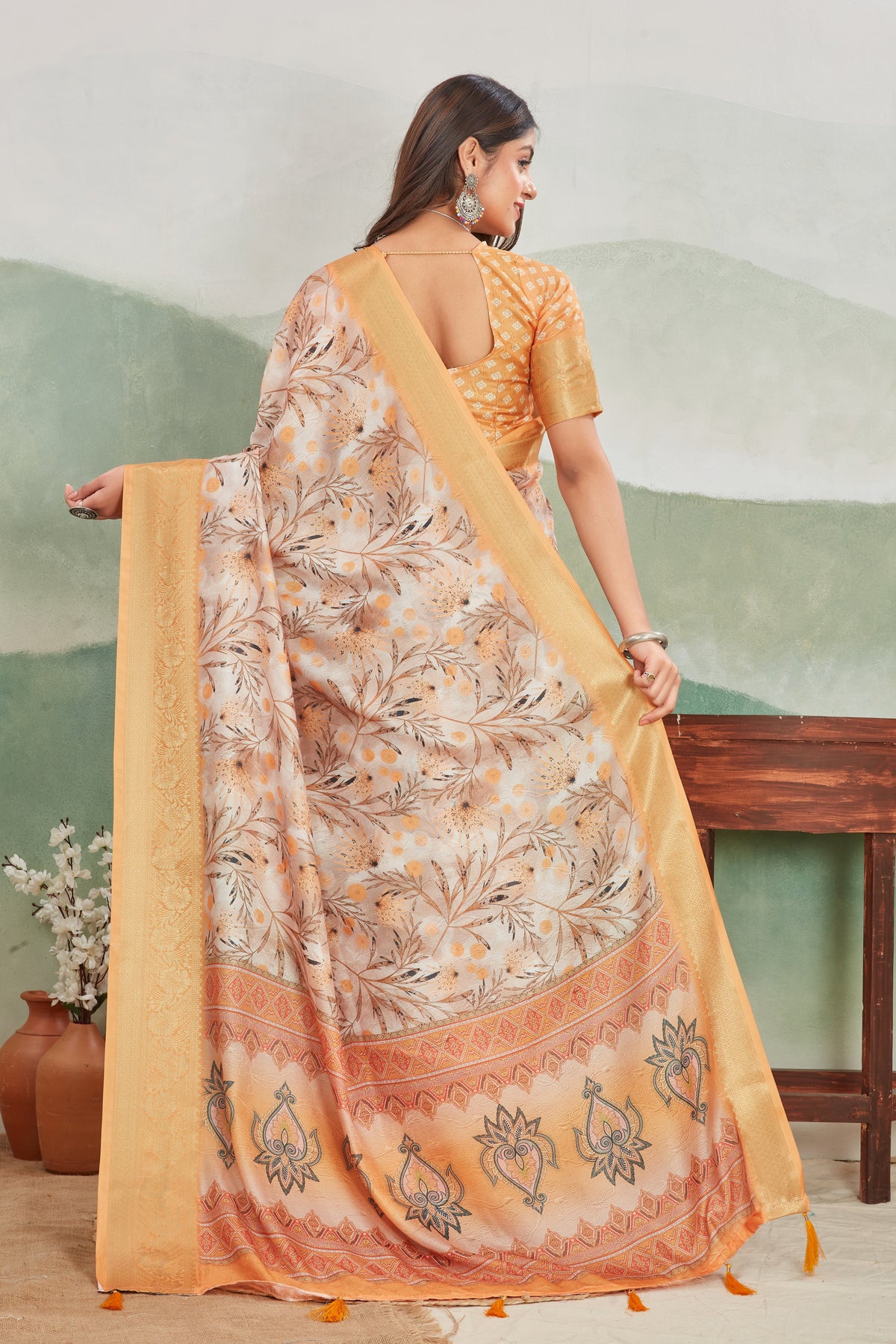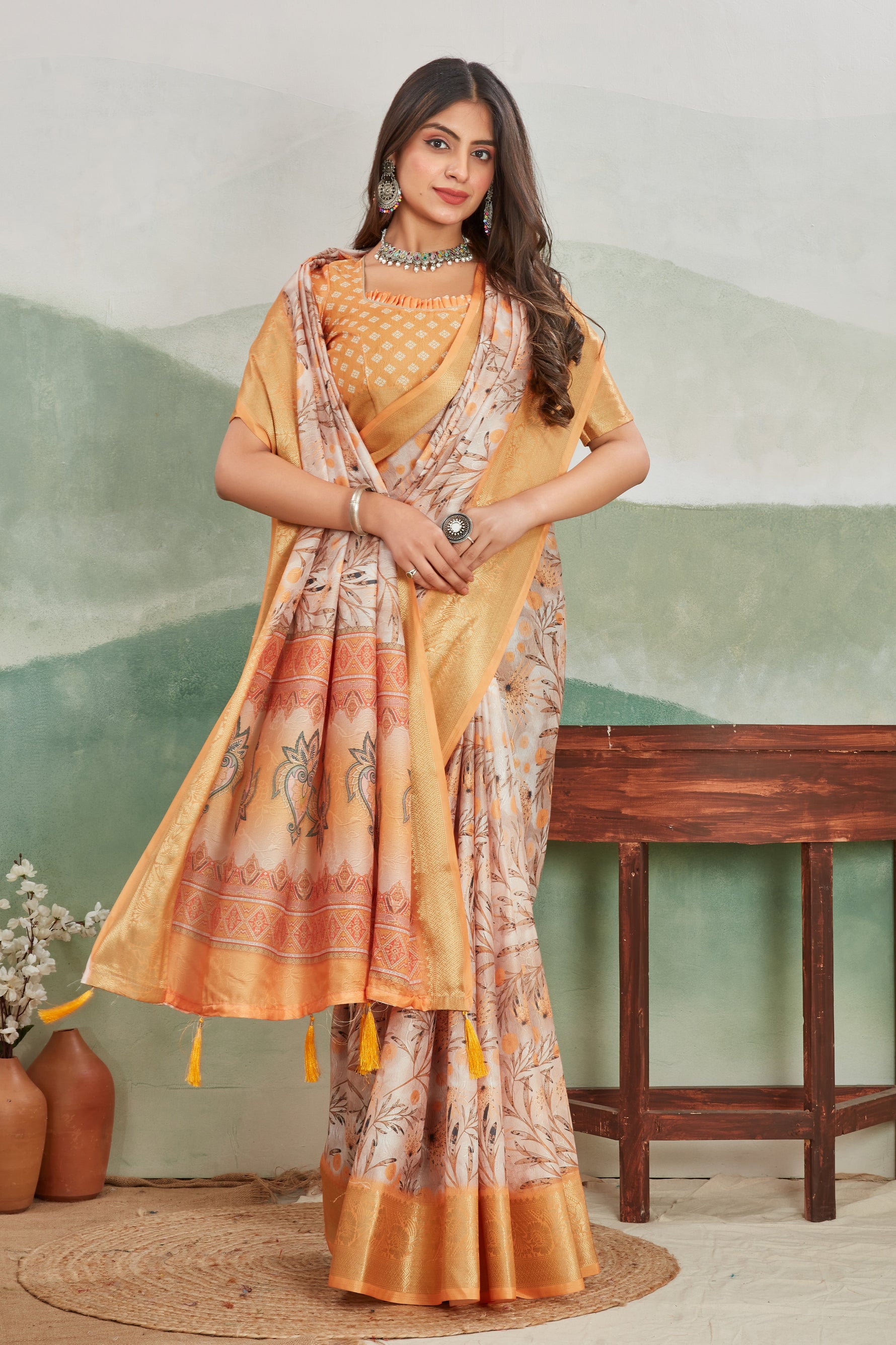Enhance your traditional wardrobe with this beautiful Viscose Khadi Batik Digital Printed Saree. Perfect for functions and special gatherings, its elegant digital print highlights a blend of heritage and contemporary design. With a saree length of 5.5 meters and an accompanying blouse piece of 0.80 meters, it provides the ideal fabric combination to drape effortlessly. This saree pairs comfort with style, crafted for lasting impressions. Remember, dry cleaning is recommended to maintain its color and fabric quality over time. A slight variation in color may occur due to display settings, adding a unique touch to your outfit.