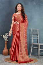 Exquisite Red Mysore Silk Saree Heavy Brocade Weaving And Designer Look