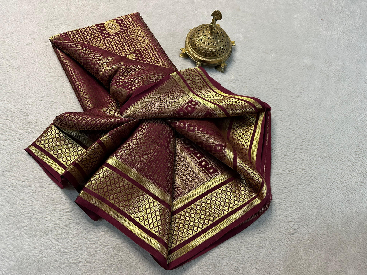 Designer Pure Mysore Silk Saree With Subtle Contrast Border Design