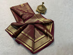 Festive Special Wine Brocade Designer Saree With Heavy Zari Work Sangeet Ready