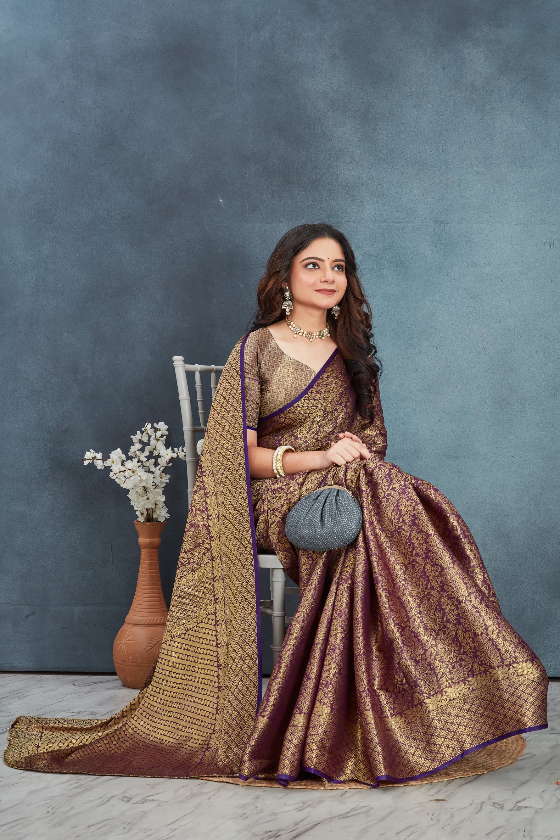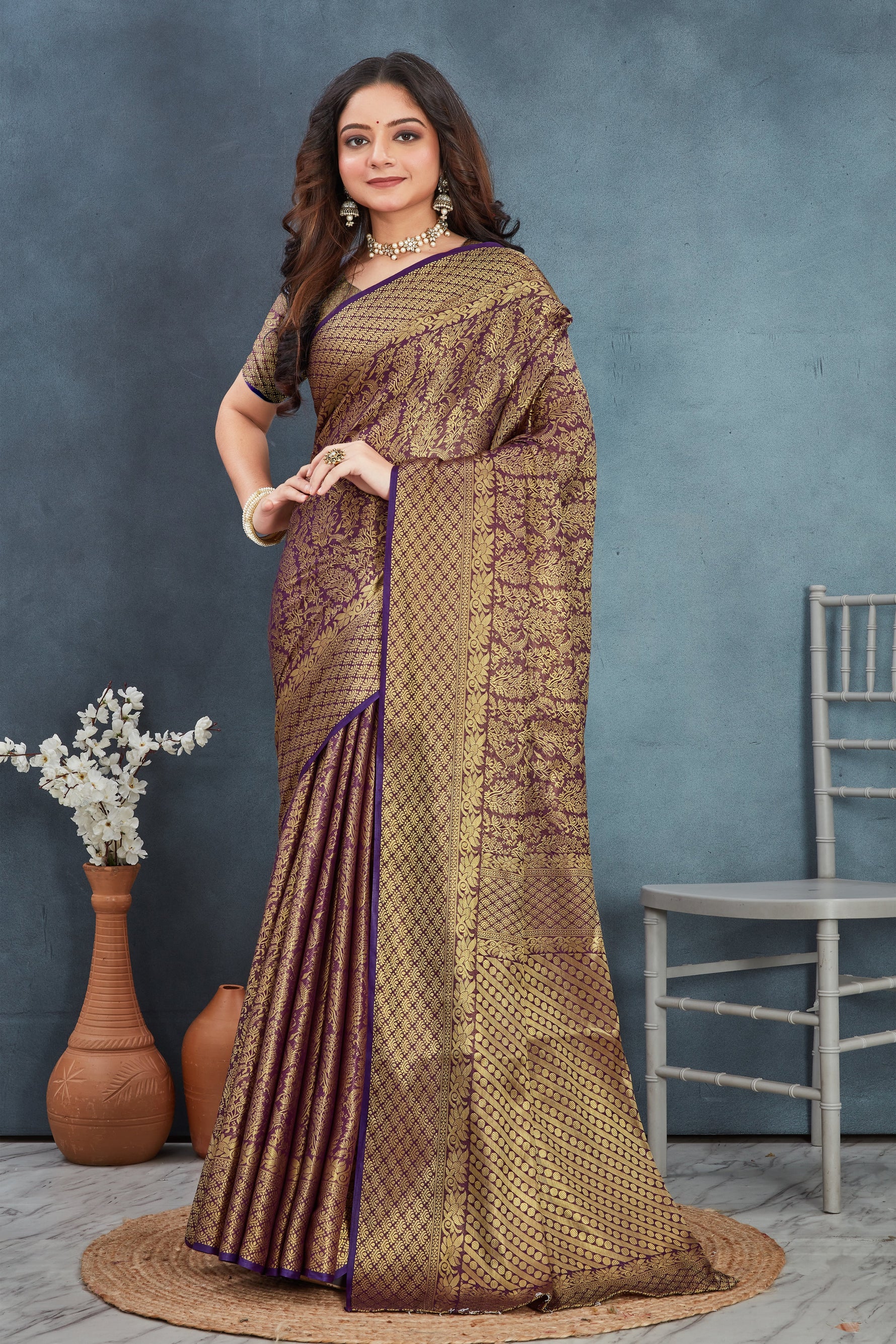 Luxury Wine Silk Saree Mysore Brocade With Heavy Weaving Finish