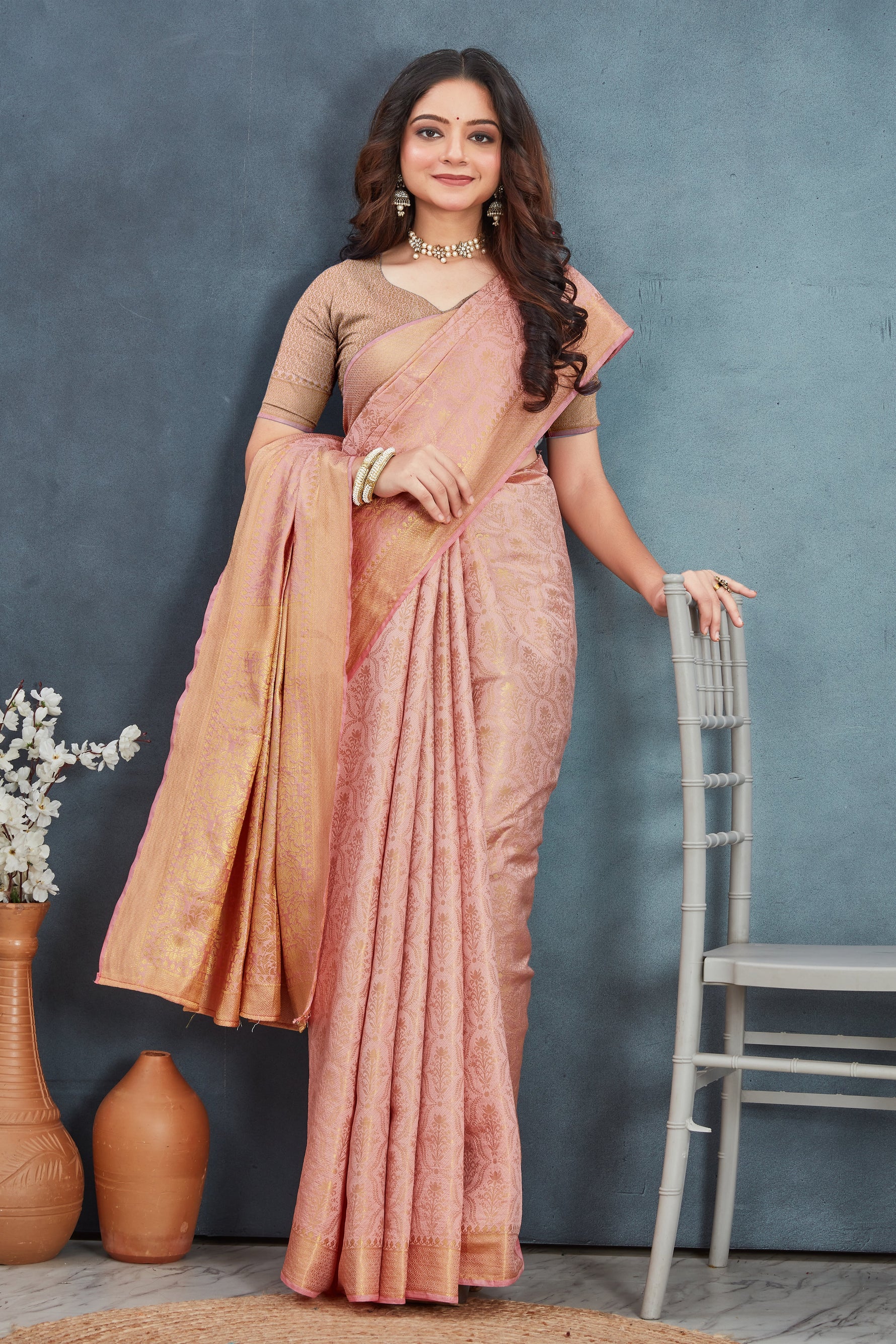 Soft Silk Brown And Pink Mysore Saree With Zari Border And Latest Blouse Fabric