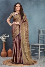 Soft Silk Brown And Pink Mysore Saree With Zari Border And Latest Blouse Fabric
