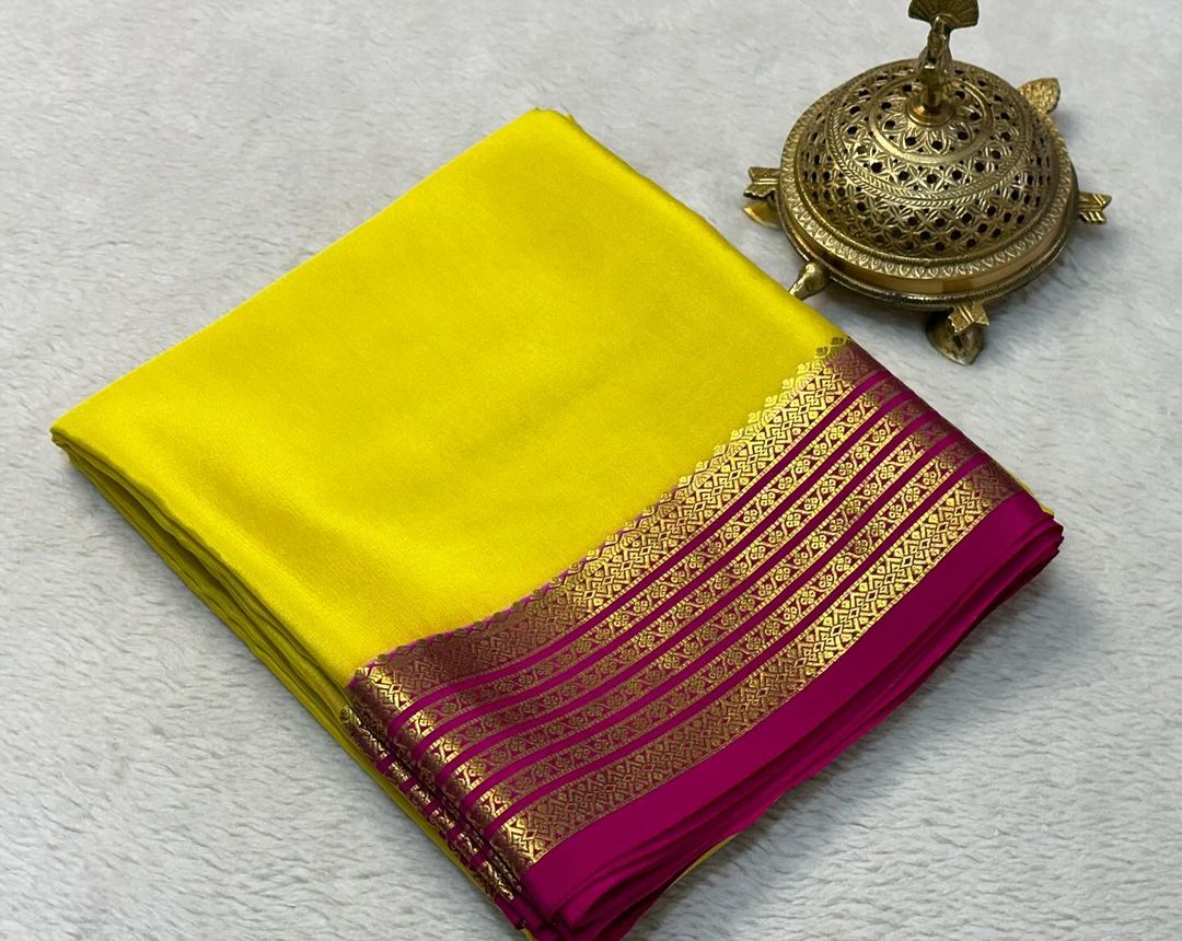 Royal Mysore Silk Soft Saree With Traditional Contrast Border Work