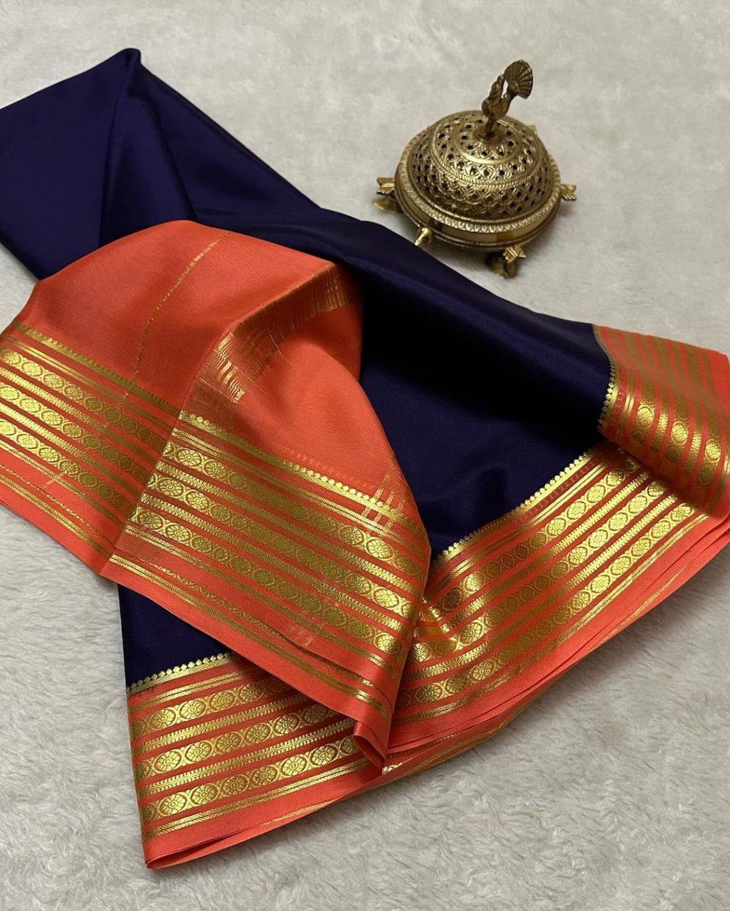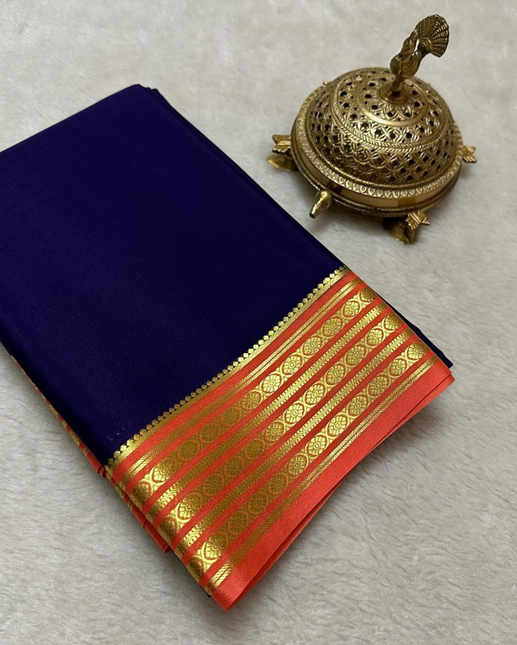 Royal Mysore Silk Soft Saree With Traditional Contrast Border Work