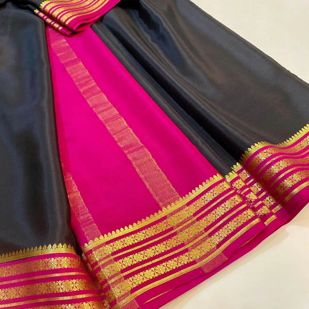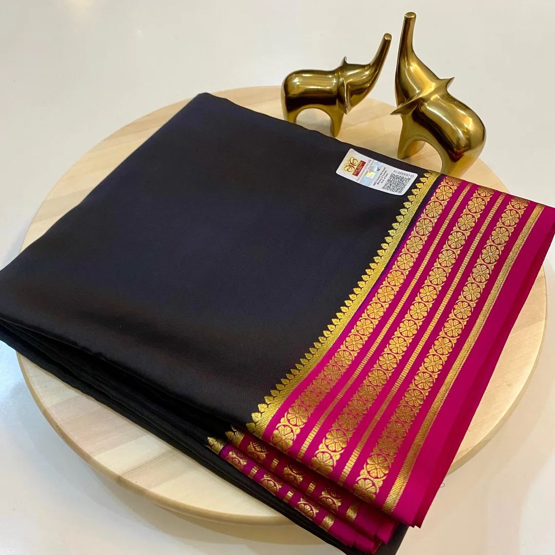 Pure Mysore Silk Saree With Elegant Contrast Border Design