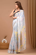 Festive Ready Casual Saree In Cream Mulmul Cotton With Coordinated Blouse