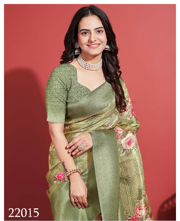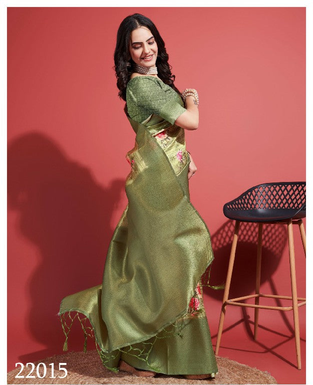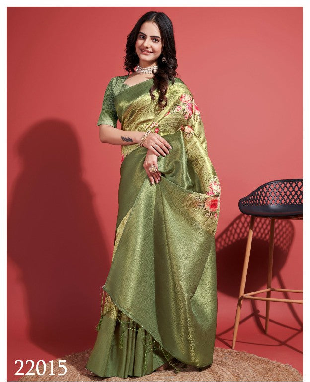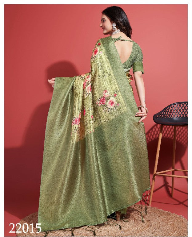 Green Soft Silk Traditional Saree Designer Digital Print For Celebrations