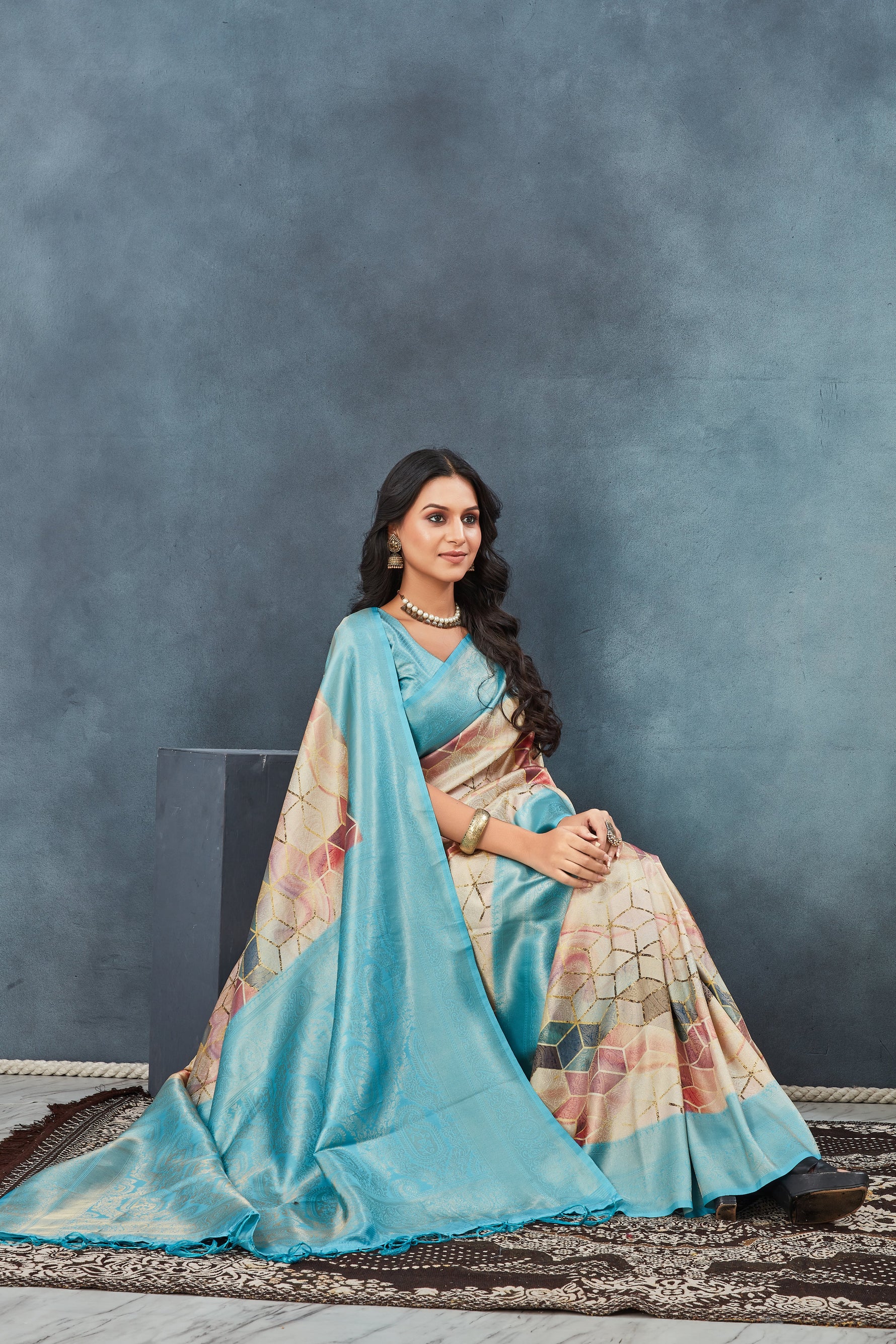 Traditional Handloom Pattu Saree Sky Blue Pure Art Silk For Weddings