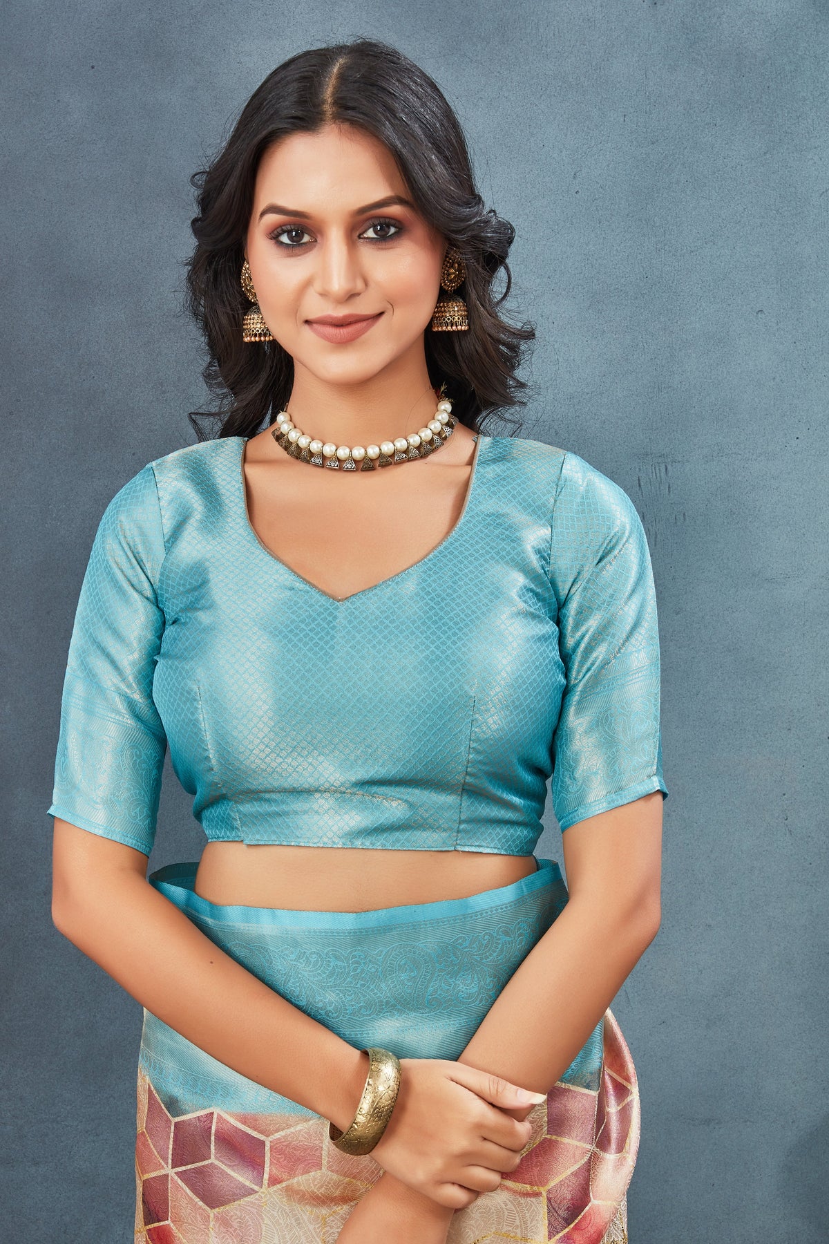 Soft Silk Brown And Pink Mysore Saree With Zari Border And Latest Blouse Fabric
