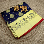 Charming Navy Blue Korvai Border Silk Saree For Traditional Wedding Look
