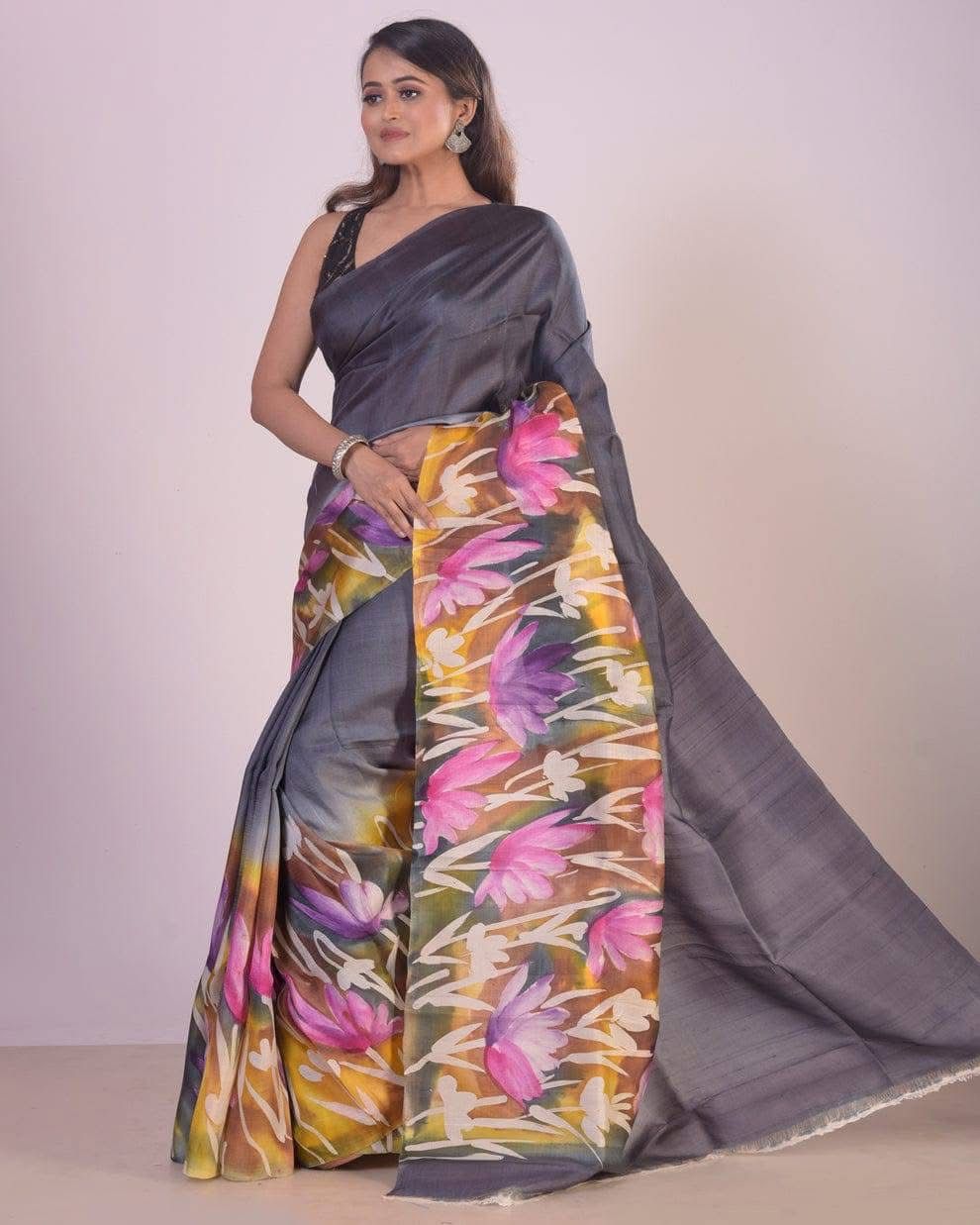 Graceful Pure Silk Saree With Vibrant Floral Prints Traditional Ethnic Wear