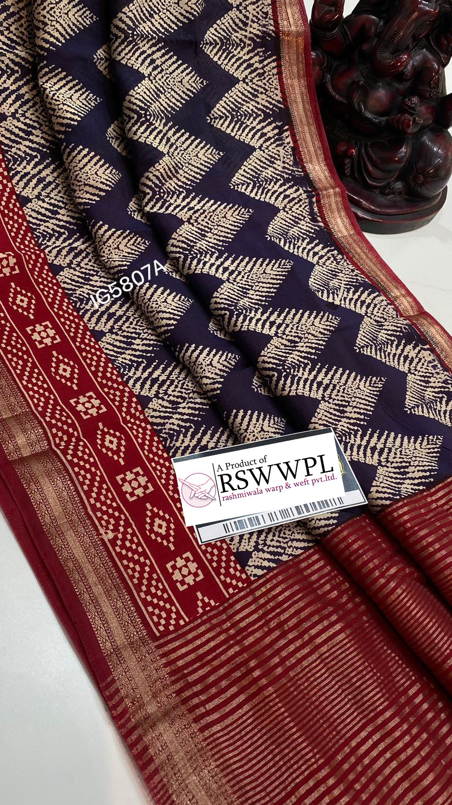 Blue Assam Pattu Inspired Dola Silk Saree With Print Work
