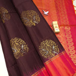Radiant Brown Lichi Silk Saree With Kanchipuram Weaving South Style Design