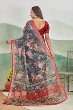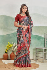 Maroon Light Printed Linen Saree Pure Fabric For Work And Home Wear