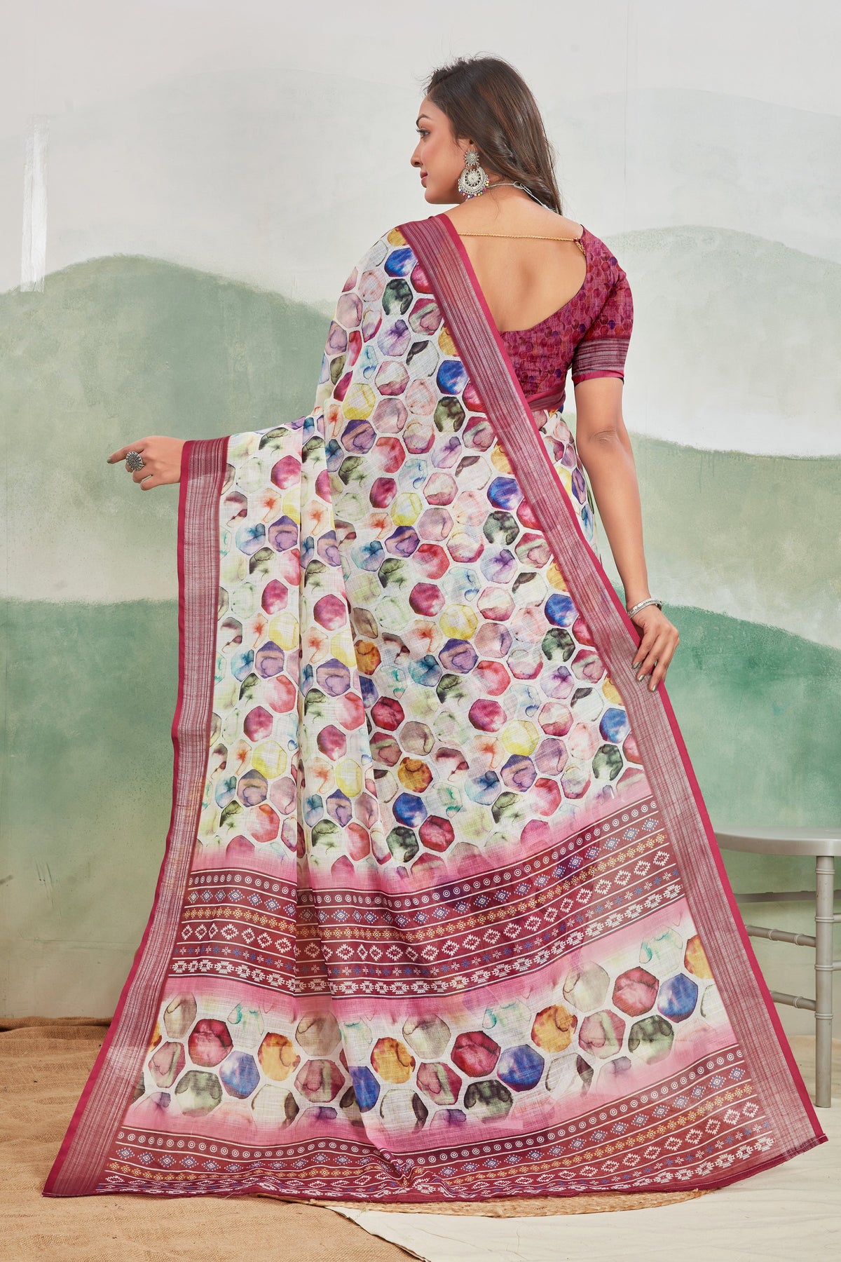 Pure Printed Linen Saree Pink Everyday Casual Style