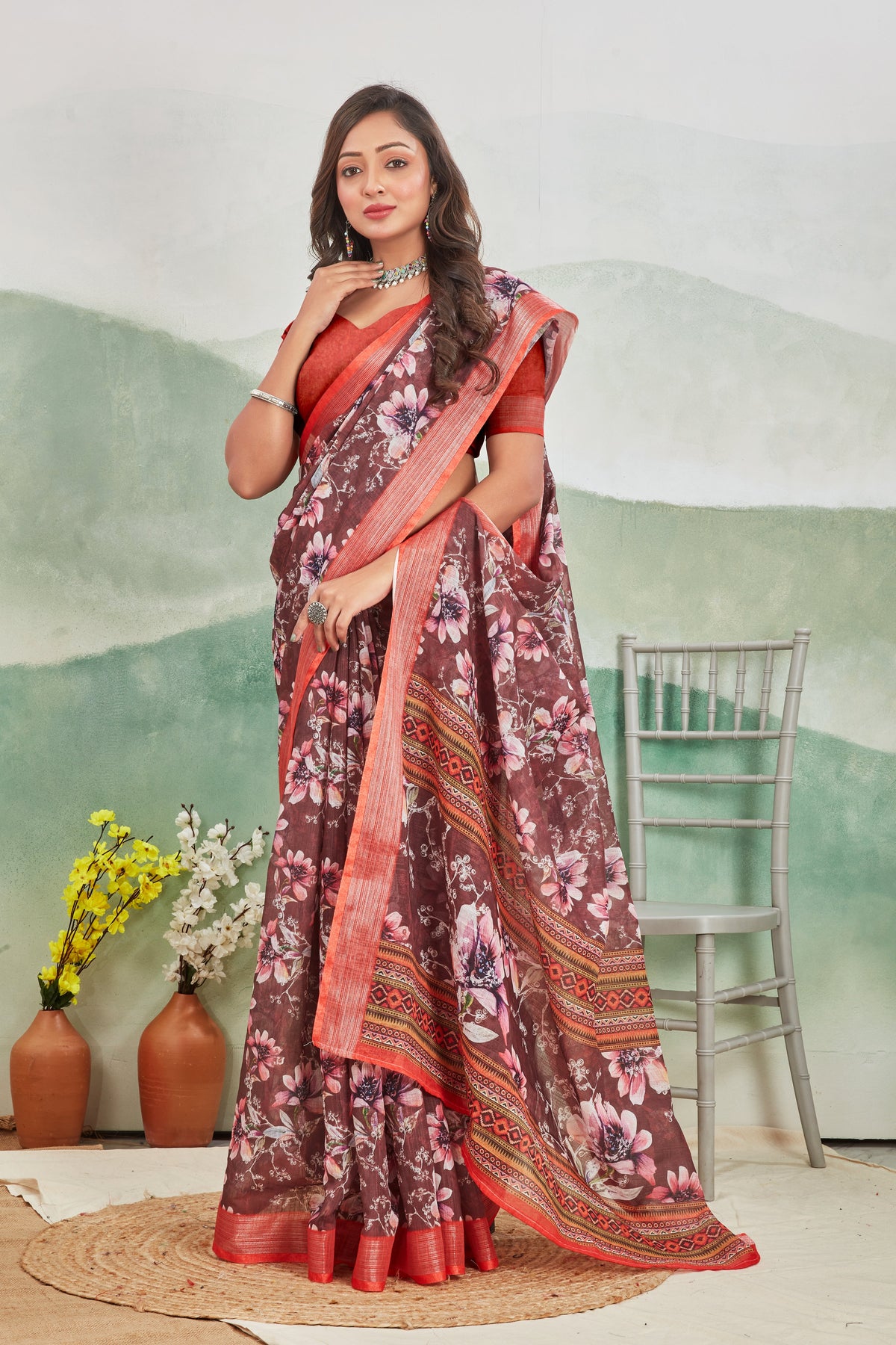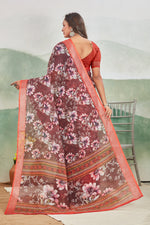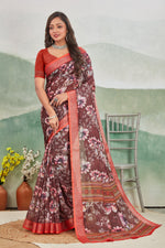 rED Soft Linen Printed Saree For Women Lightweight And Traditional Casual Look