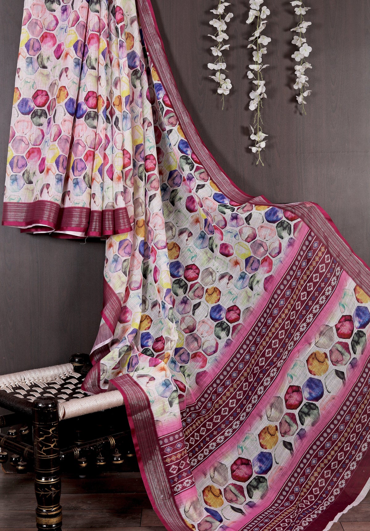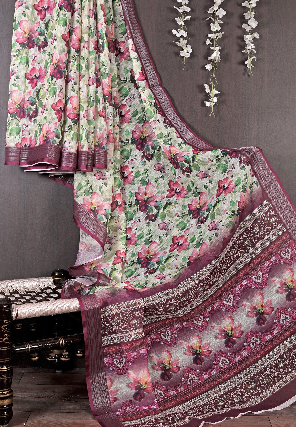 Experience effortless elegance with the Splendiferous Pure Linen Printed Daily Wear Saree. Designed for functions, this traditional saree combines a modern printed pattern with the timeless appeal of pure linen. The 5.5-meter saree offers graceful draping, while the 0.80-meter blouse length allows for a customizable fit. Crafted with precision, this saree promises comfort without compromising style. Please note that slight color variation is possible. Dry clean only to maintain its charm.