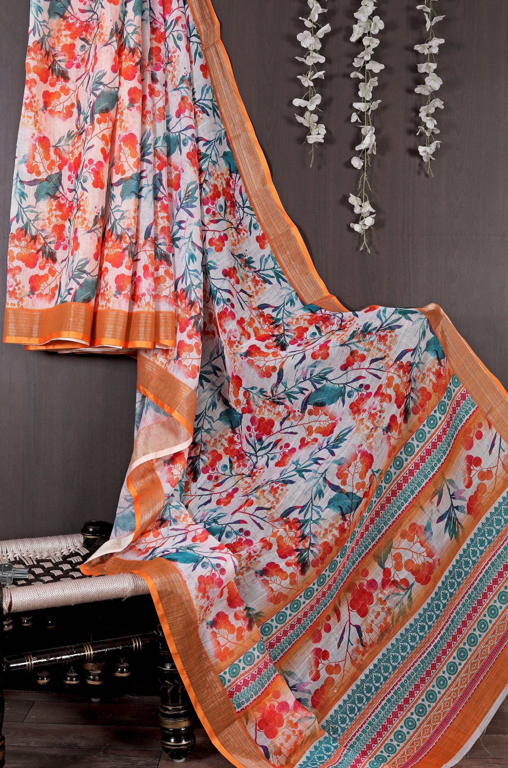 Regular Wear Saree Pure Linen With Printed Casual Look