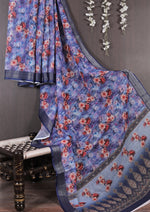 Classic Blue Zari Border Mysore Silk Saree With Fancy Blouse Fabric