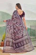 Soft Printed Saree In Wine Pure Linen For Everyday Comfort