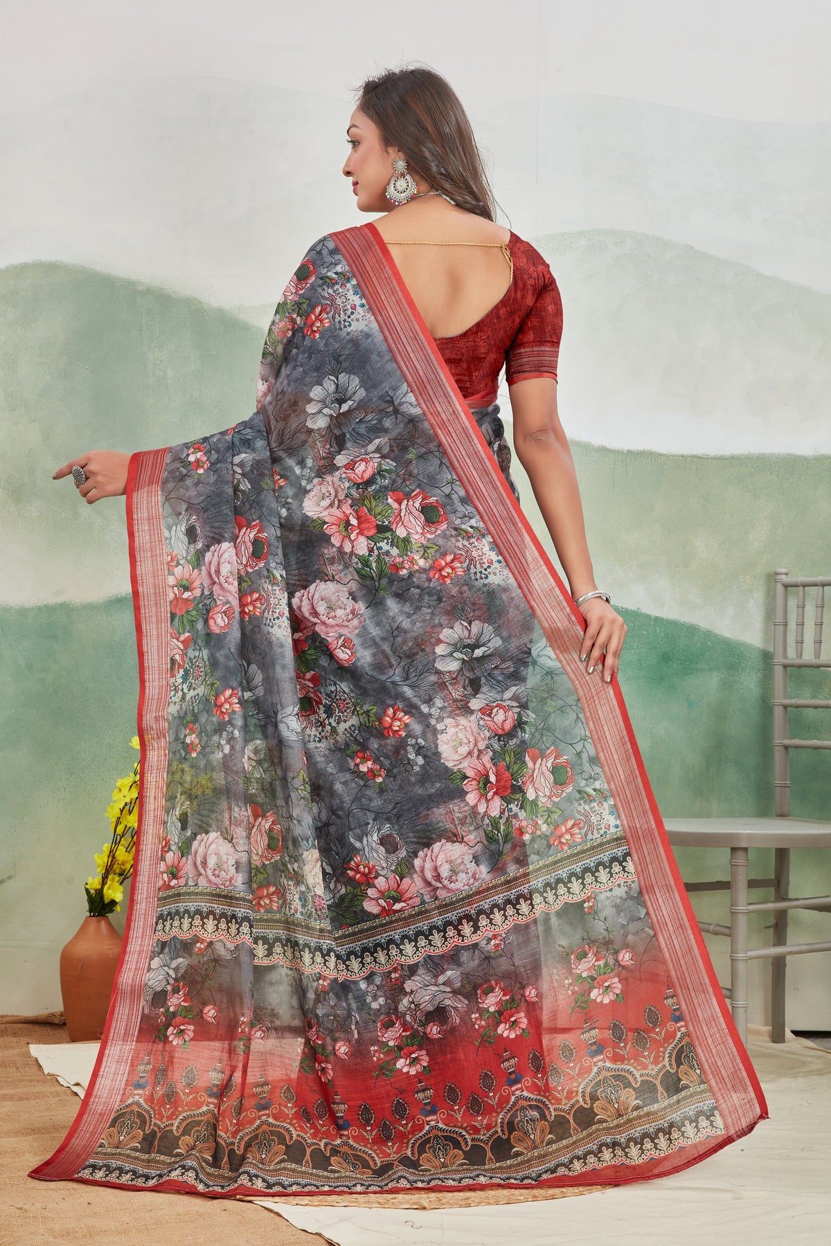 Trendy Digital Printed Soft Silk Saree In Linen Blend Ethnic Ready