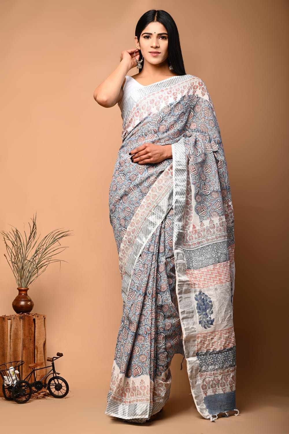 Designer Printed Pure Linen Saree With Blouse For Cultural Occasions