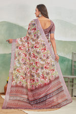Ethnic Digital Printed Soft Silk Linen Saree Lightweight And Graceful
