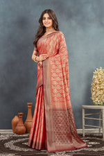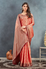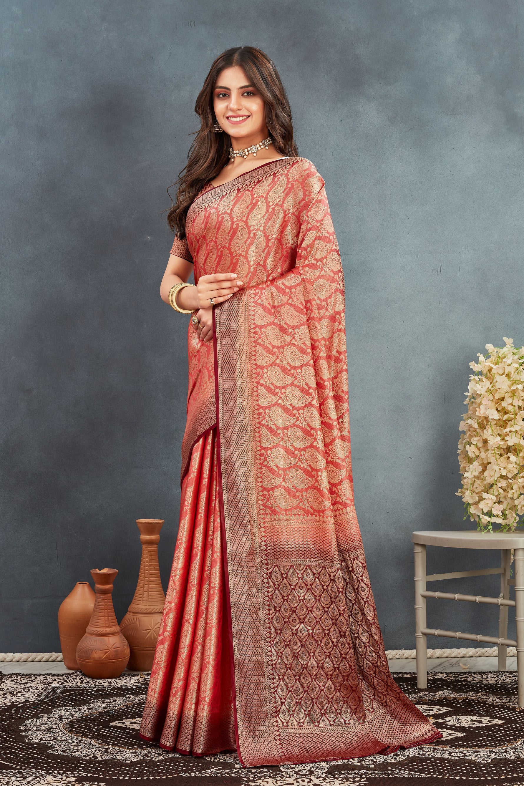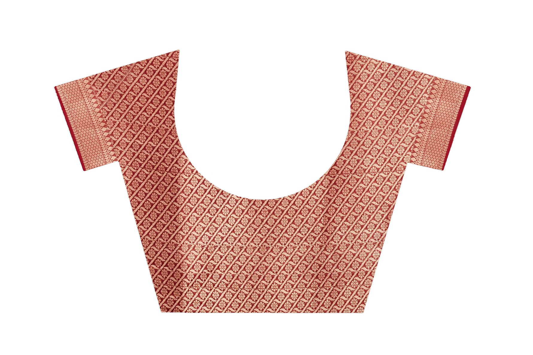 Make a statement at weddings and traditional functions with this Mysore Brocade Silk Zari Saree. With a detailed Zari weaving pattern, this saree radiates grace and sophistication, making it the perfect choice for grand events. It offers a 5.5-meter length, paired with 0.80 meters of stylish blouse material, designed to complement any occasion. Crafted from fine silk, it promises comfort while maintaining a luxurious look. To preserve its beauty, professional dry cleaning is recommended. Slight color variations enhance its one-of-a-kind charm. Step into elegance and shine bright with this elegant saree!