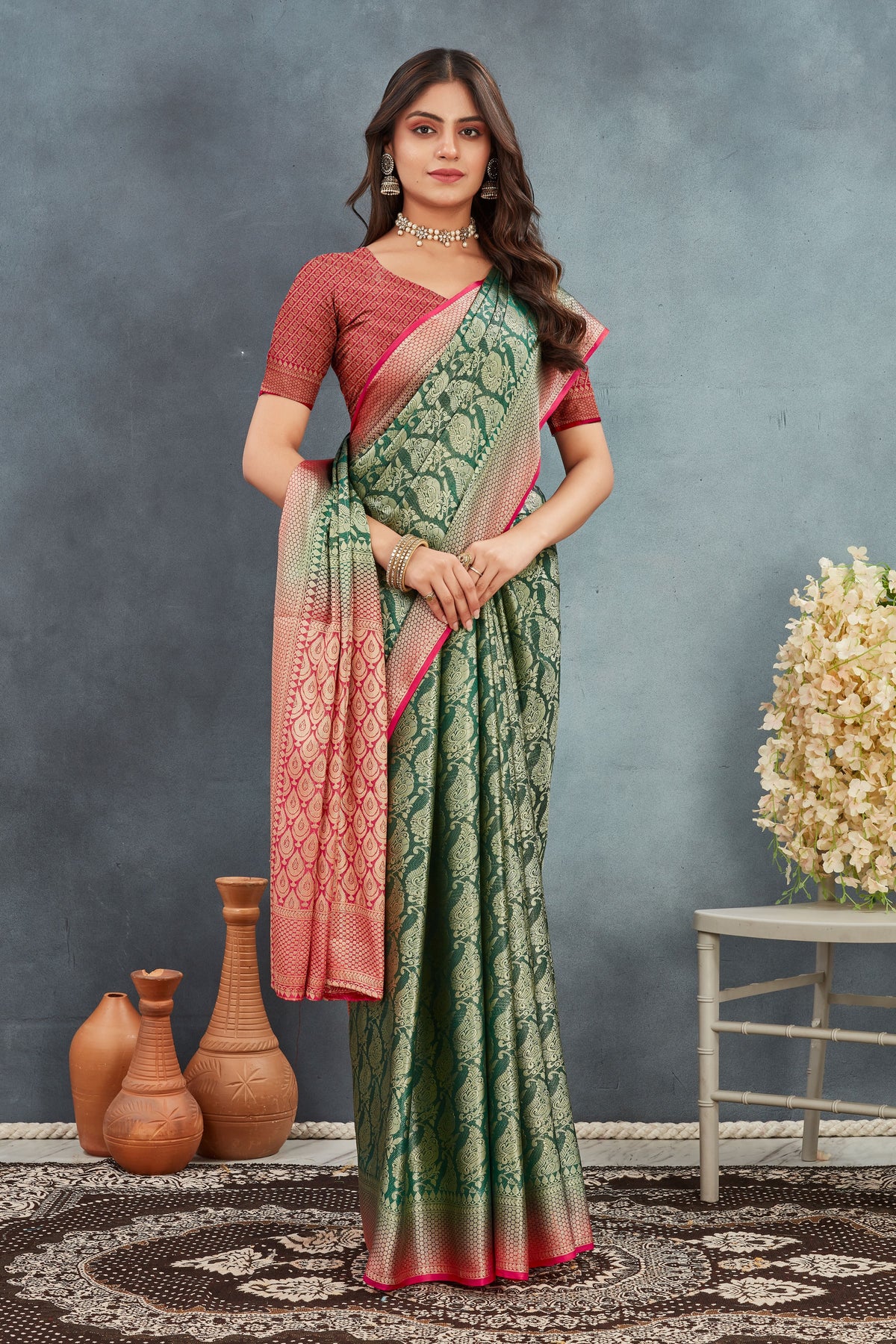 Rich Mysore Silk Zari Saree With Banarasi Inspired Weaving And Fashionable Blouse Fabric