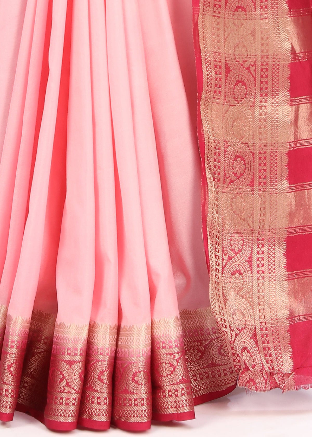 Bold Pink Mysore Soft Silk Saree With Shiny Zari Border And Blouse Combo