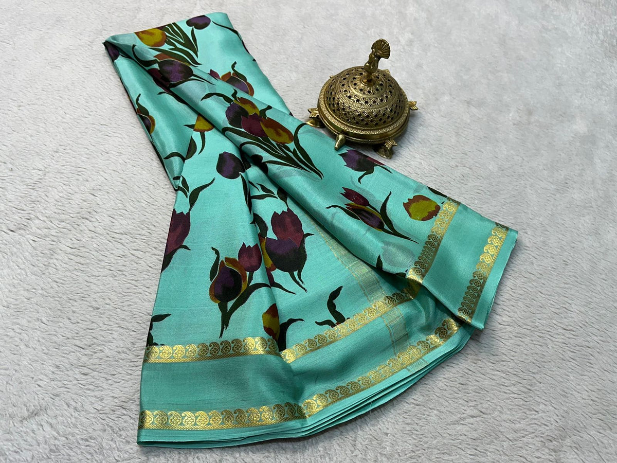 Graceful Printed Mysore Crepe Saree For Functions And Parties Ethnic Style