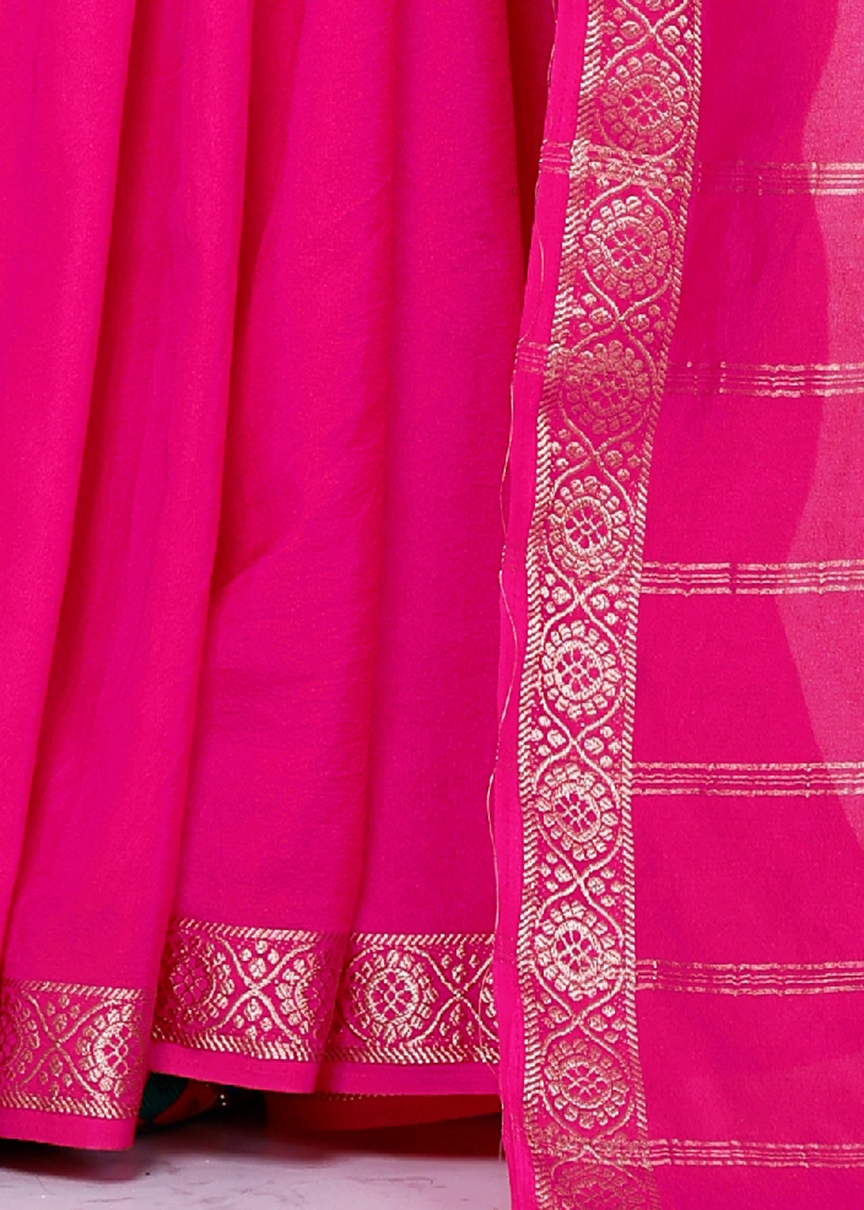 Elevate your style with our Mysore Crepe Silk Sarees. Combining simplicity and sophistication, our sarees are the perfect choice for any occasion. Made from high-quality silk, these sarees offer a luxurious drape and a timeless appeal. Upgrade your wardrobe now with these exquisite sarees.