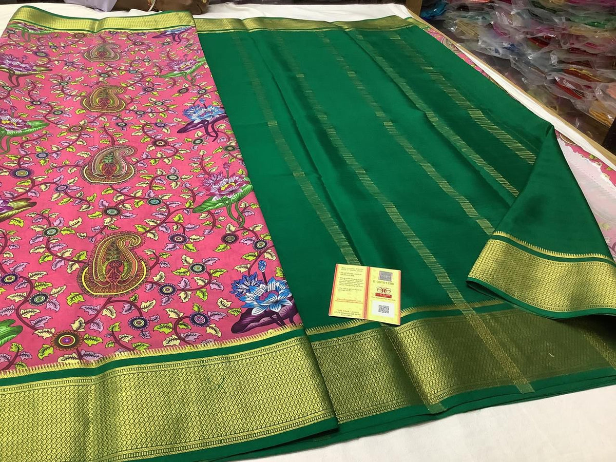 Traditional Mysore Crepe Silk Printed Saree With Rich Zari Border
