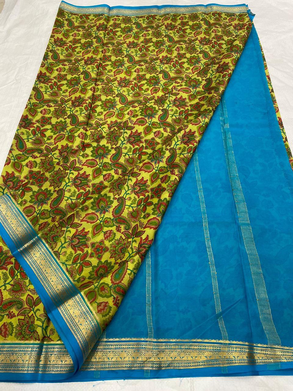 Elevate your style with Pure Mysore Printed crepe silk sarees*. Made from high-quality crepe silk, these sarees are ultra-soft and lightweight, providing maximum comfort. The elegant prints add a touch of sophistication to any outfit. Stand out from the crowd with these luxurious sarees.