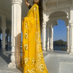 Yellow Georgette Saree Fresh Floral Digital Print For Office And Festive Wear