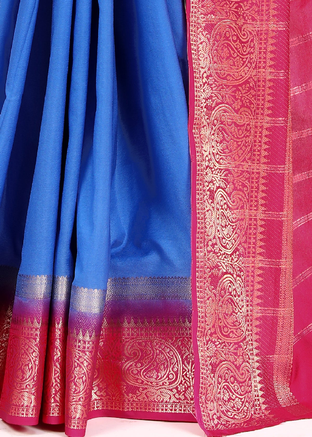 Graceful Plain Mysore Crepe Saree In Royal Blue With Heritage Zari Border Work