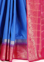 Classic Blue Zari Border Mysore Silk Saree With Fancy Blouse Fabric