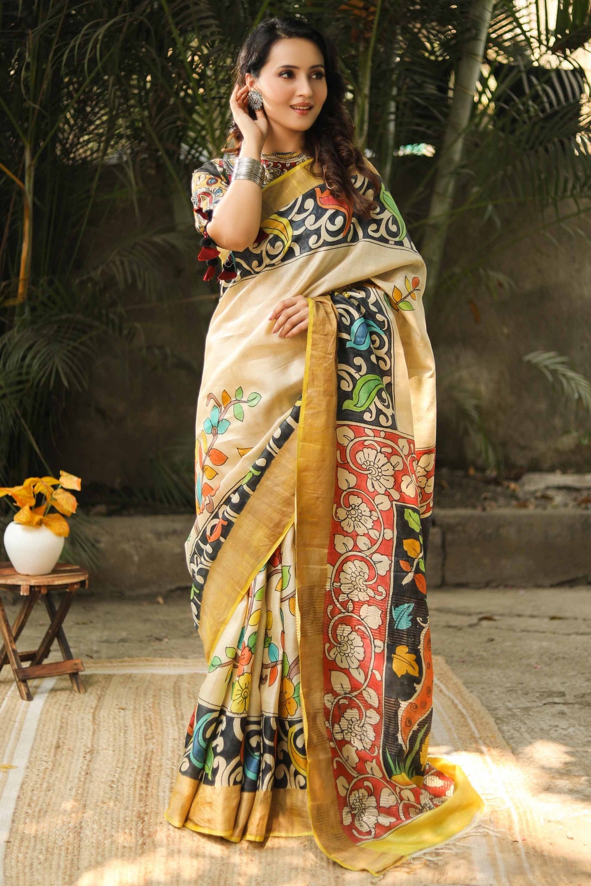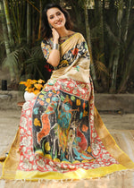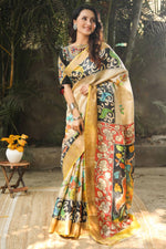 Tussar Silk Saree with Artistic Kalamkari Design And Trendy Blouse Fabric