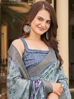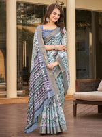 Bridal Function Saree Blue Printed Art Silk With Soft Pattu Weave